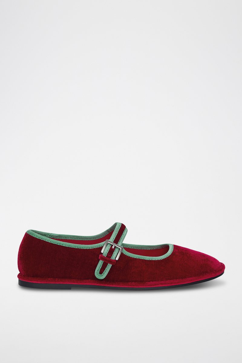 Bailarina mary jane de terciopelo - Burdeos