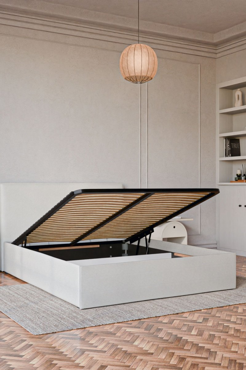 Fabricado en Europa, combina calidad de alta gama y practicidad, gracias a un amplio espacio de almacenamiento bajo el somier y un mecanismo de apertura fácil y seguro.