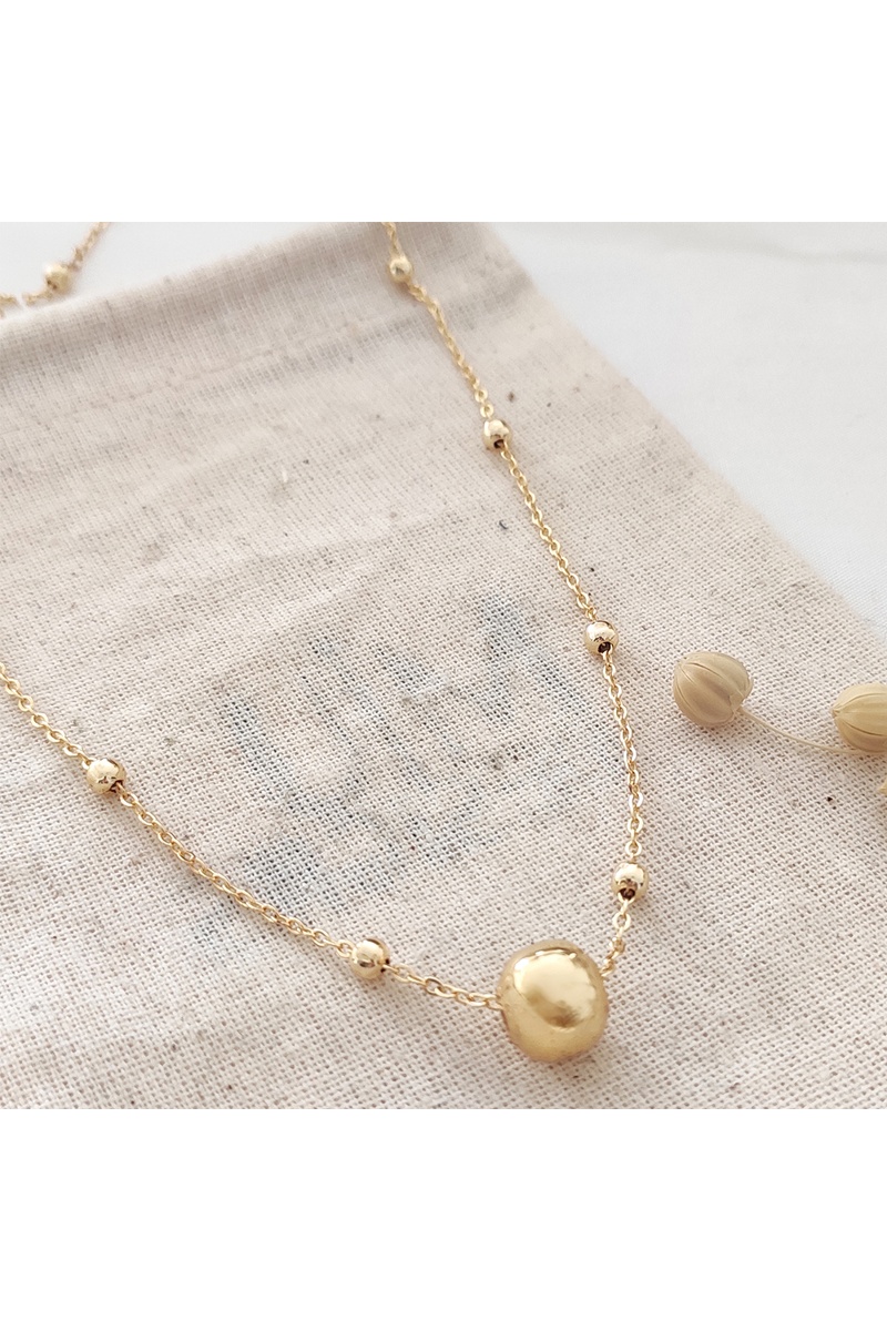 Enamórate de este collar de latón chapado en oro, con un colgante con forma de bola. Es ideal para resaltar tu escote. ¡Nos encanta!