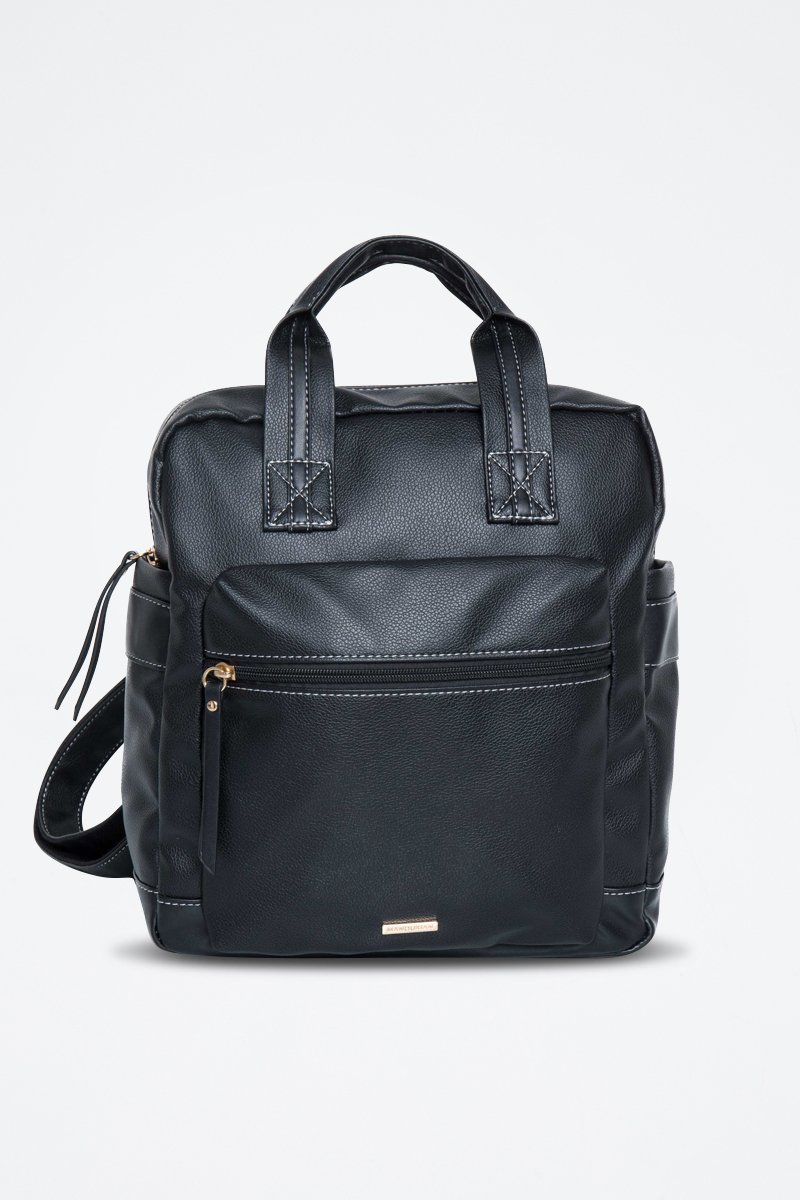Bolsillo con cremallera y detalle de metal con logo delante.