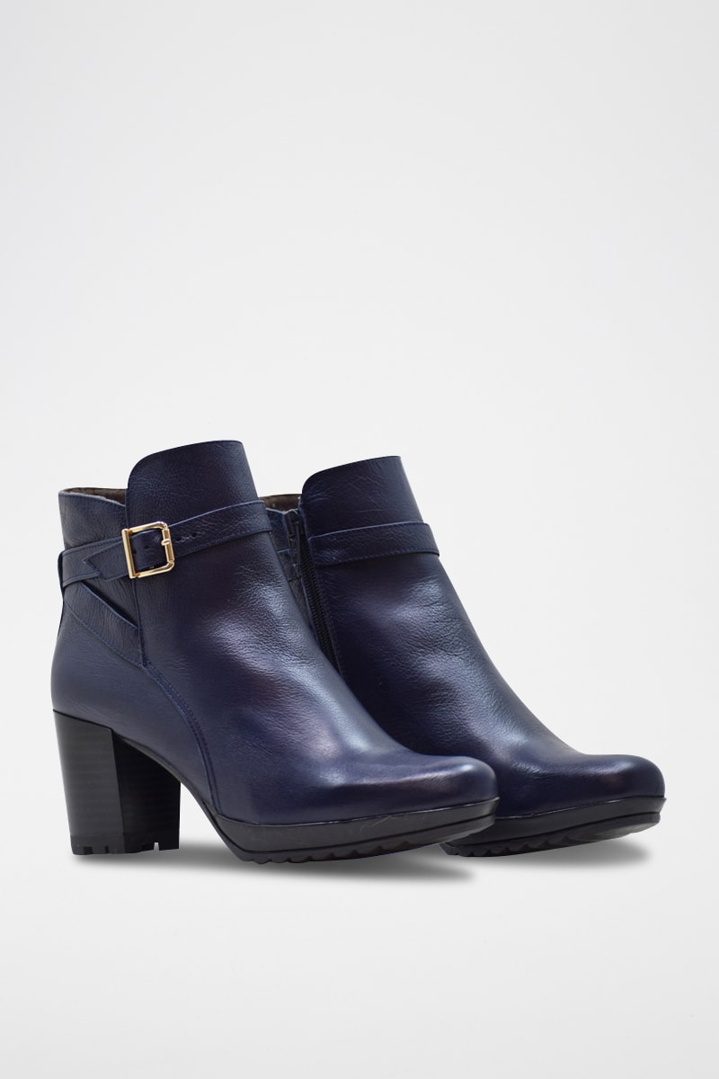 Botines de piel de serraje - Azul marino