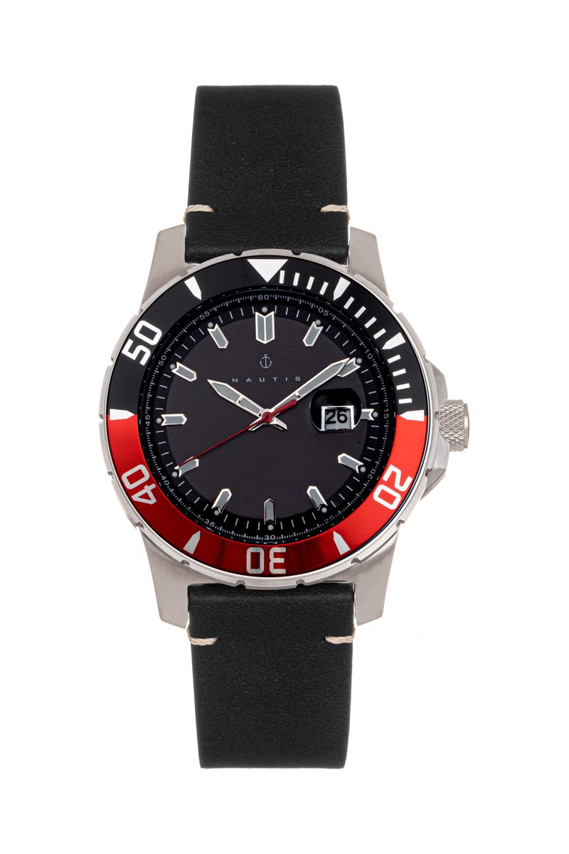 Reloj de cuarzo de piel Diver Pro 200 - Negro y rojo