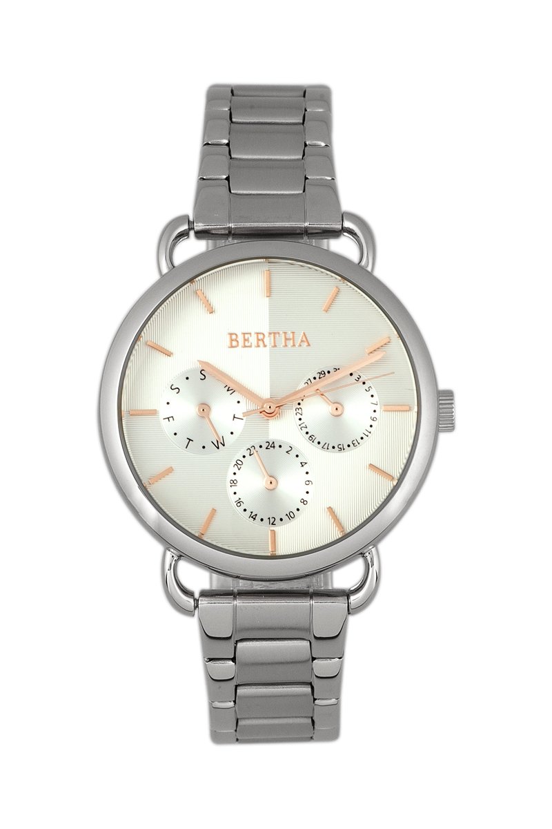 Reloj de cuarzo de acero - Plateado y rosa dorado - Bertha