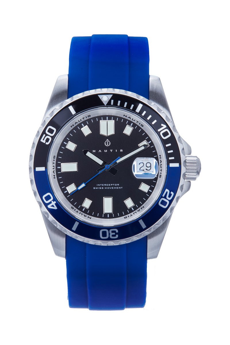 Reloj de cuarzo de caucho Interceptor - Azul marino y negro - Nautis