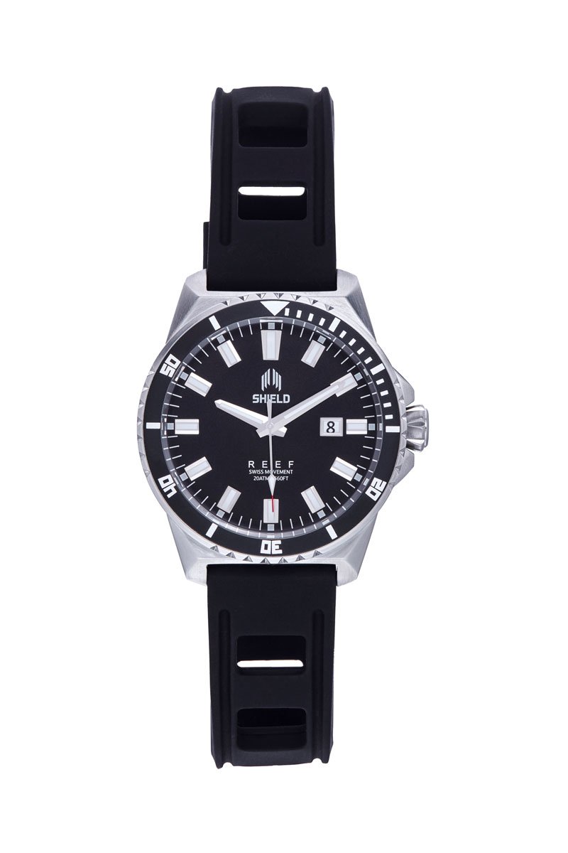 Reloj de cuarzo de caucho Reef - Negro y plateado