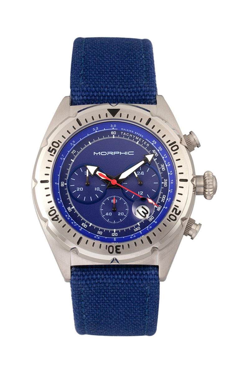 Reloj de cuarzo de piel M53 Series - Cronógrafo y taquímetro - Azul marino y plateado