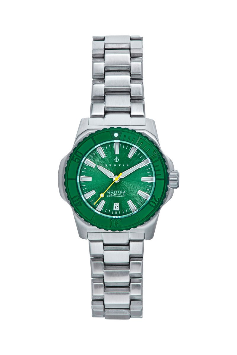 Reloj automático de acero Cortez - Plateado y verde - Nautis