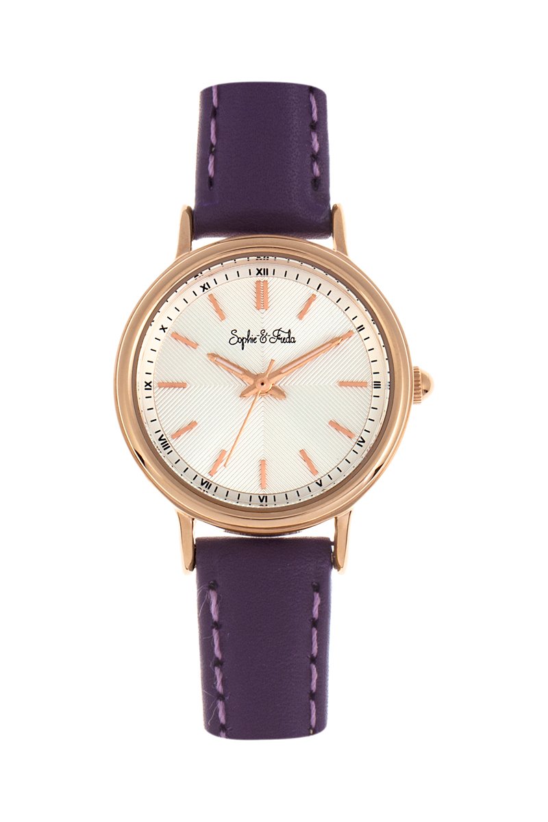 Reloj de cuarzo de piel Berlin - Violeta y rosa dorado