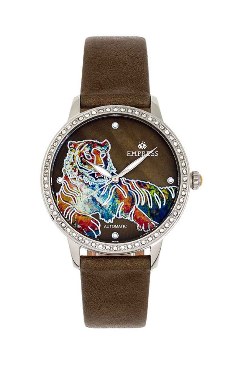 Reloj automático de piel Diana - Marrón y plateado - Empress
