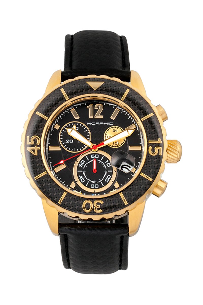 Reloj de cuarzo de piel - Cronógrafo - Negro y dorado