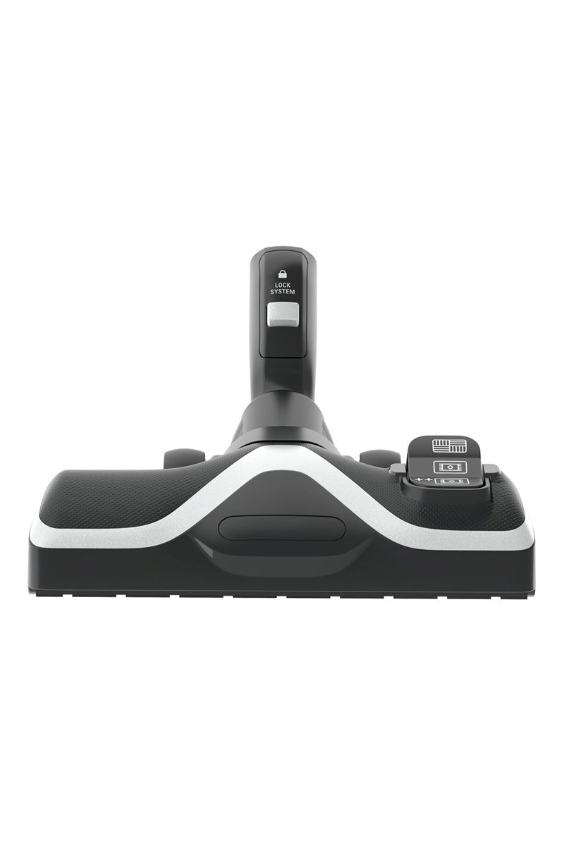La boquilla del aspirador tiene un botón que acciona el cepillo: entrada para alfombras y moquetas, salida para suelos lisos: parqué, baldosas, linóleo...