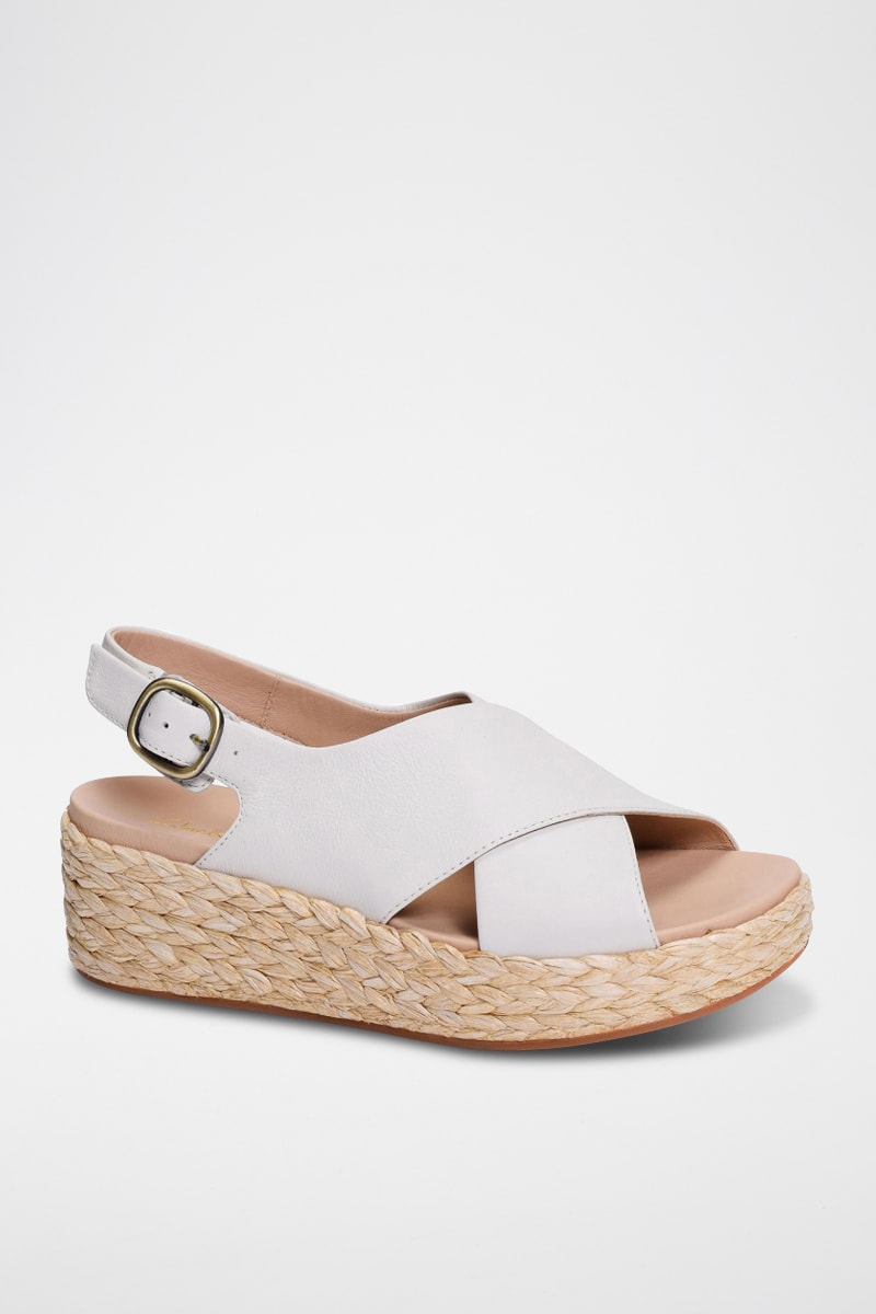 Sandalias de piel de cuña Kimmei Cross - Blanco