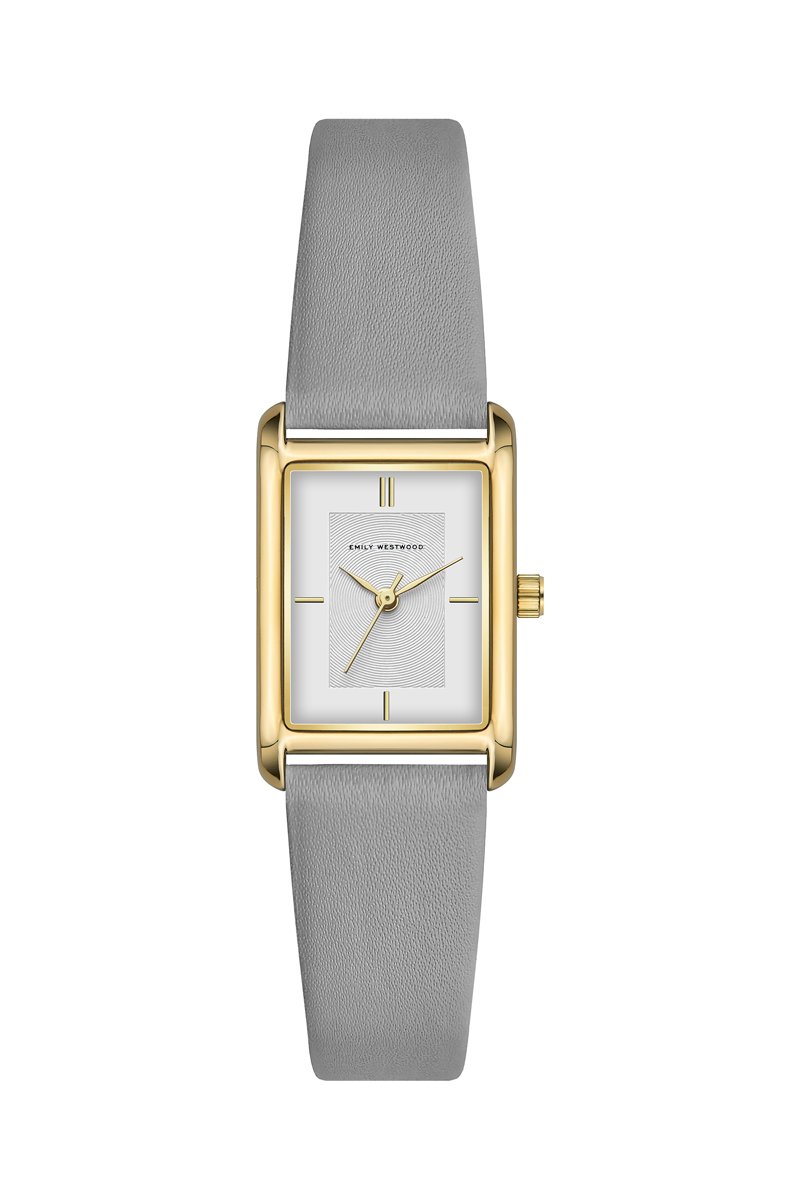 Reloj de cuarzo de piel - Gris y dorado - Emily Westwood