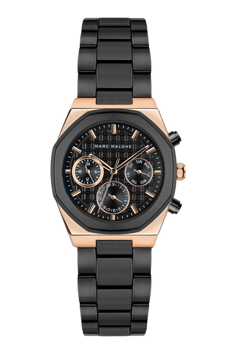 Reloj de cuarzo de acero - Negro y rosa dorado - Marc Malone