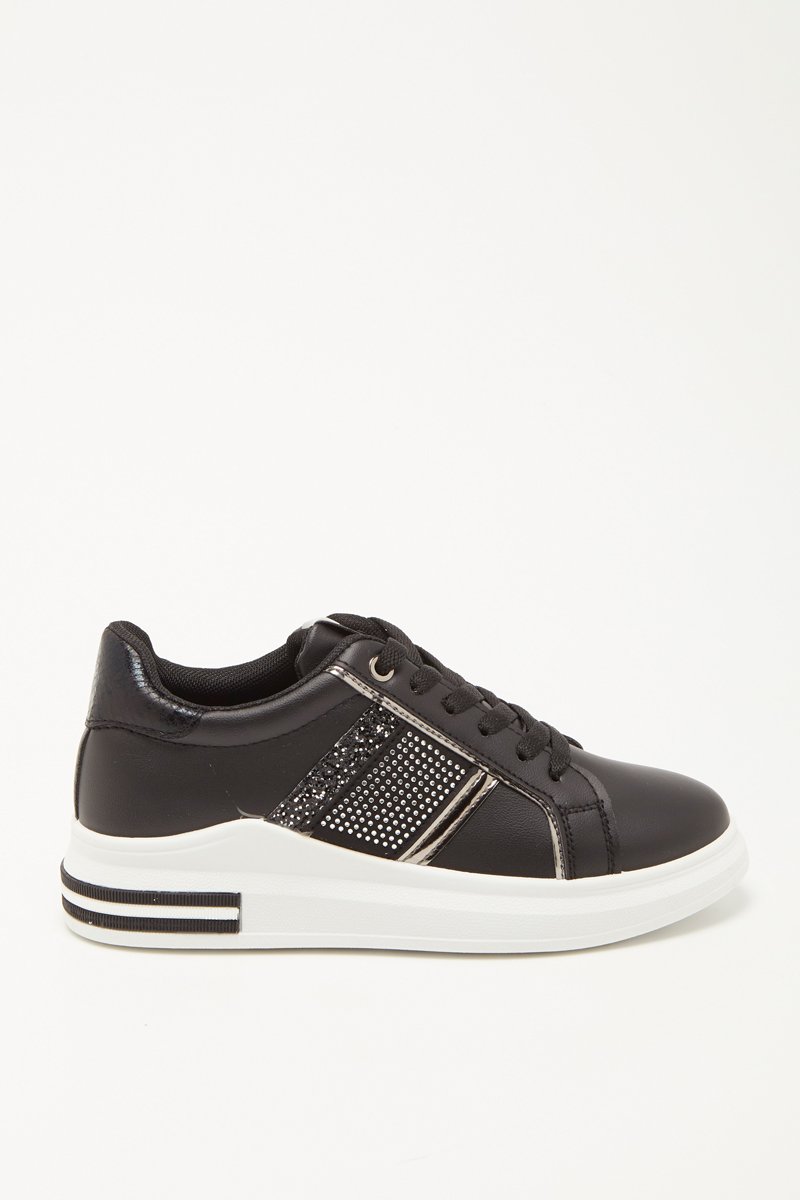 Detalles en contraste y strass en los laterales y efecto reptil detrás.