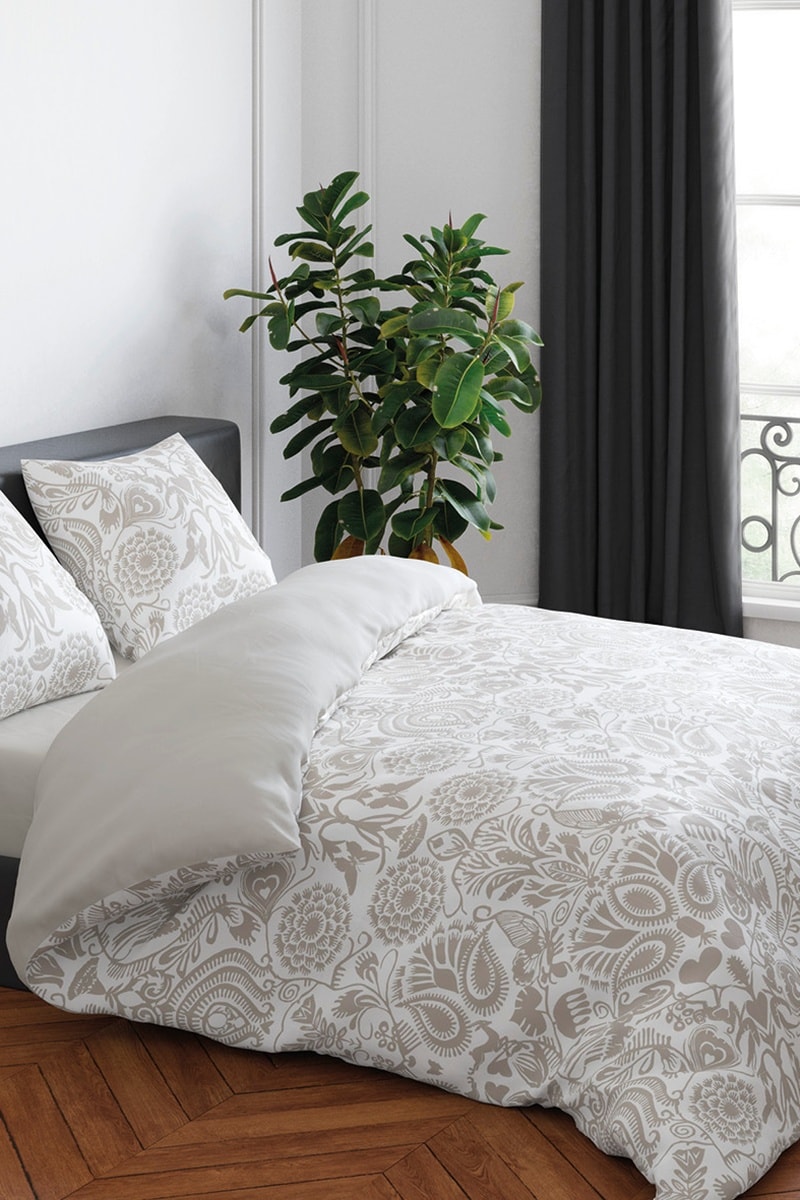 Juego de nórdico de satén de algodón 80 hilos/cm² Love Stories - Blanco y topo