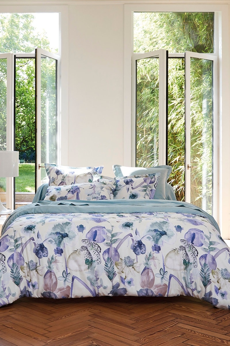 Juego de nórdico de satén de algodón 80 hilos/cm² Exotique - Violeta y blanco