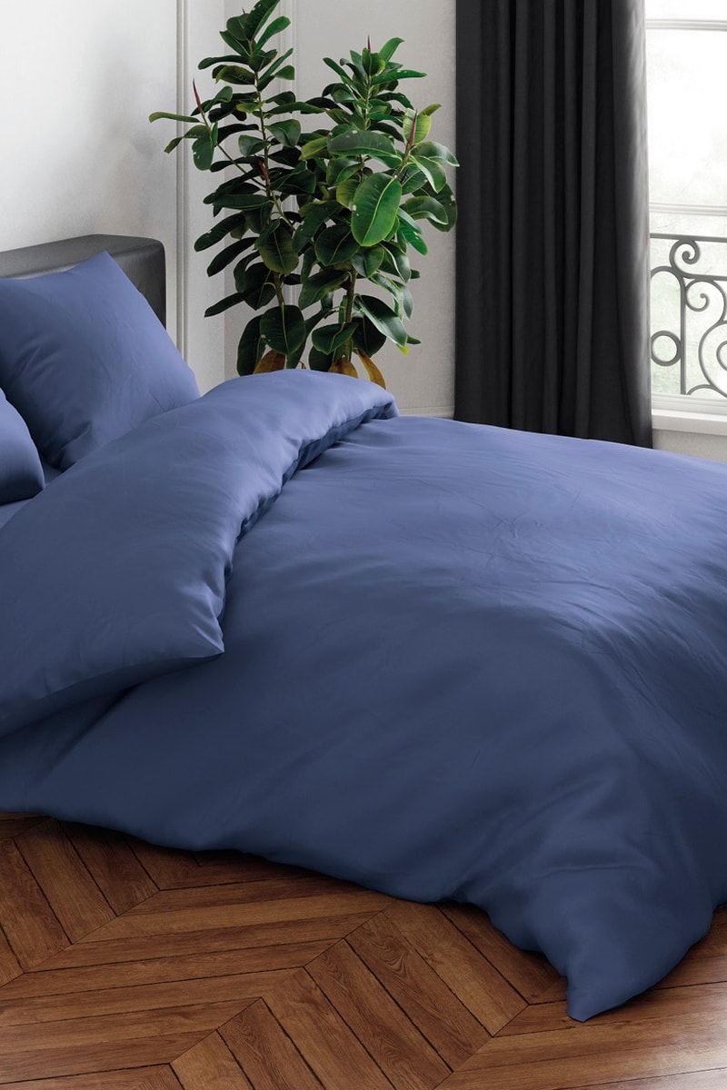 Juego de nórdico de satén de algodón 80 hilos/cm² Uni - Azul cobalto