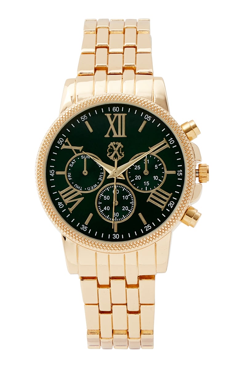 Reloj de cuarzo de metal aleado - Subesfera de segundos - Dorado y verde oscuro