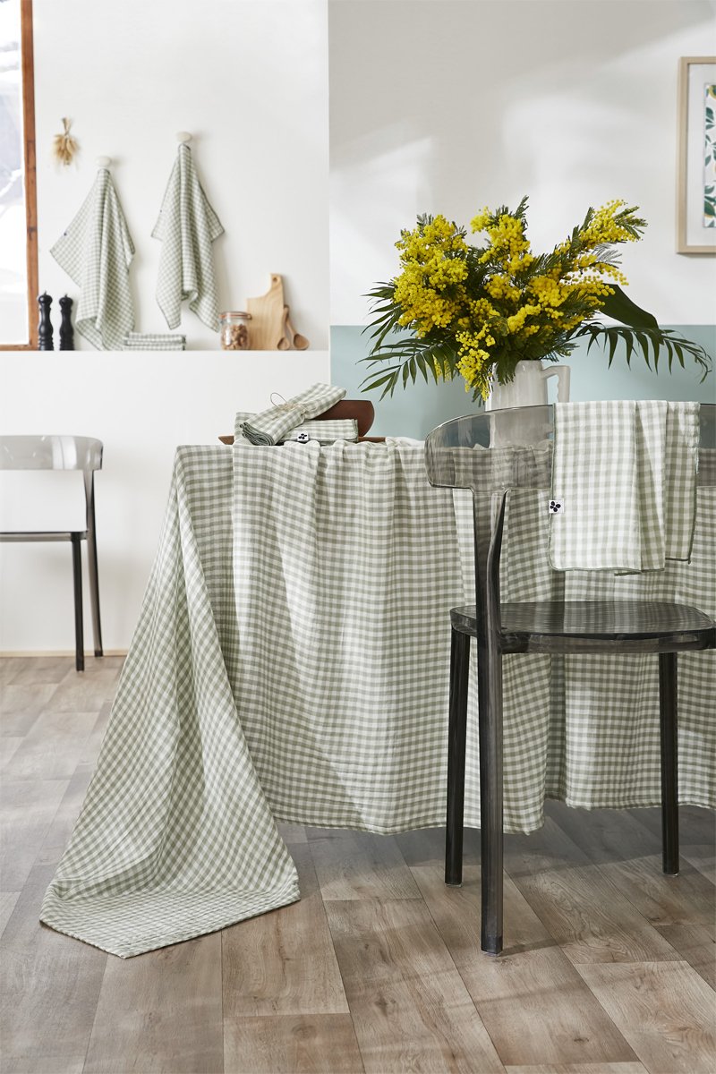 Mantel rectangular de algodón 125 g/m² Vickie - Verde y blanco