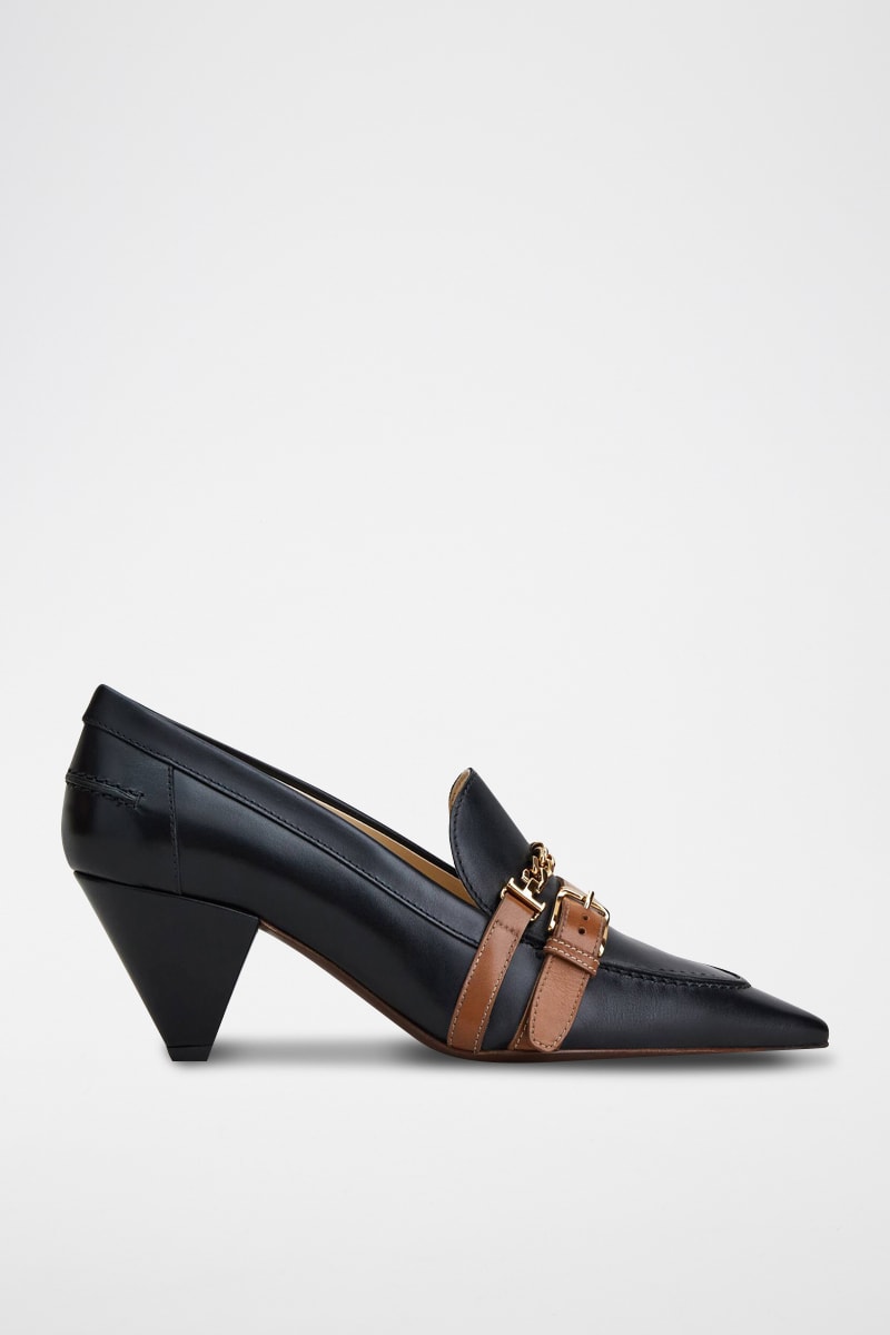 Mocasines de piel de tacón - Negro