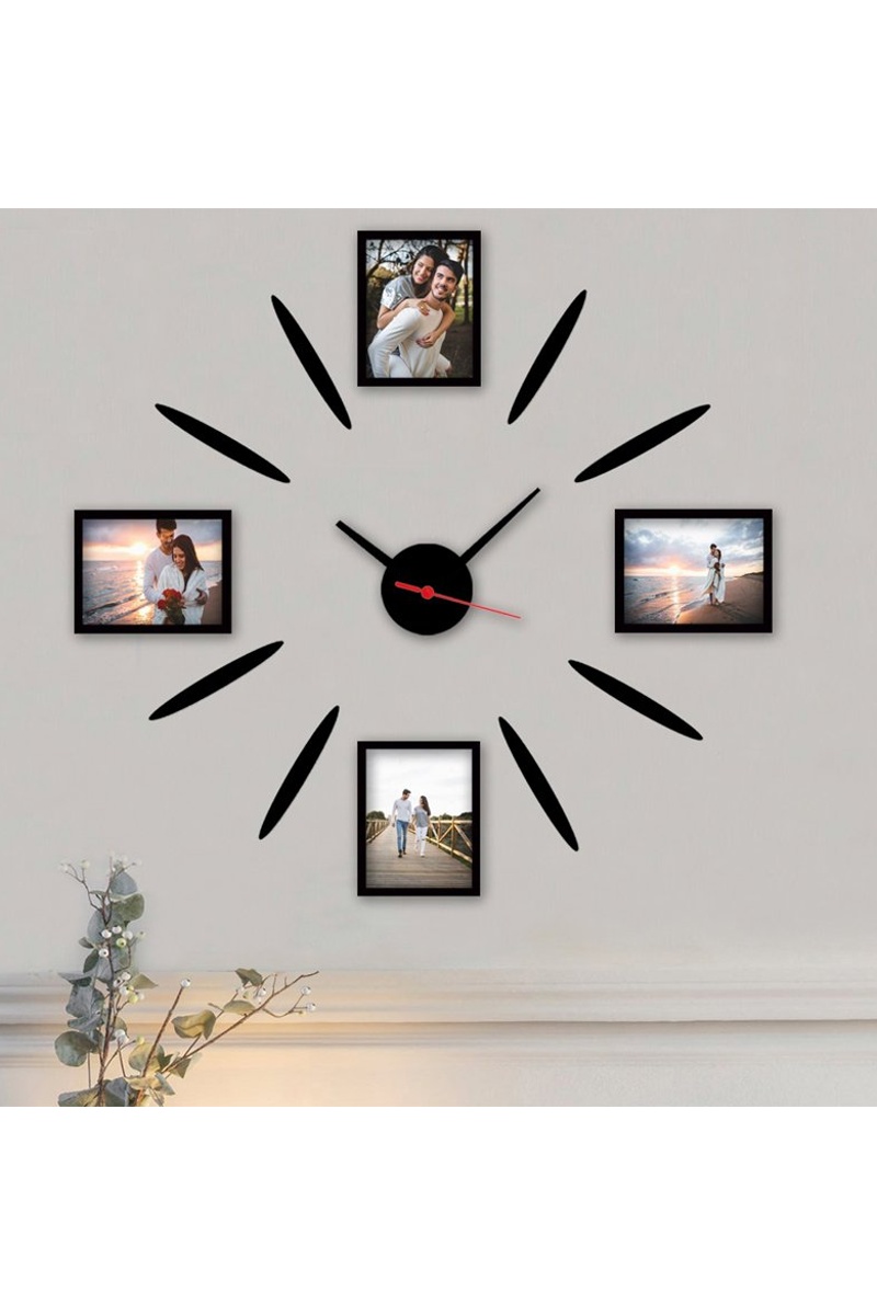 Reloj con 4 marcos de fotos - Negro