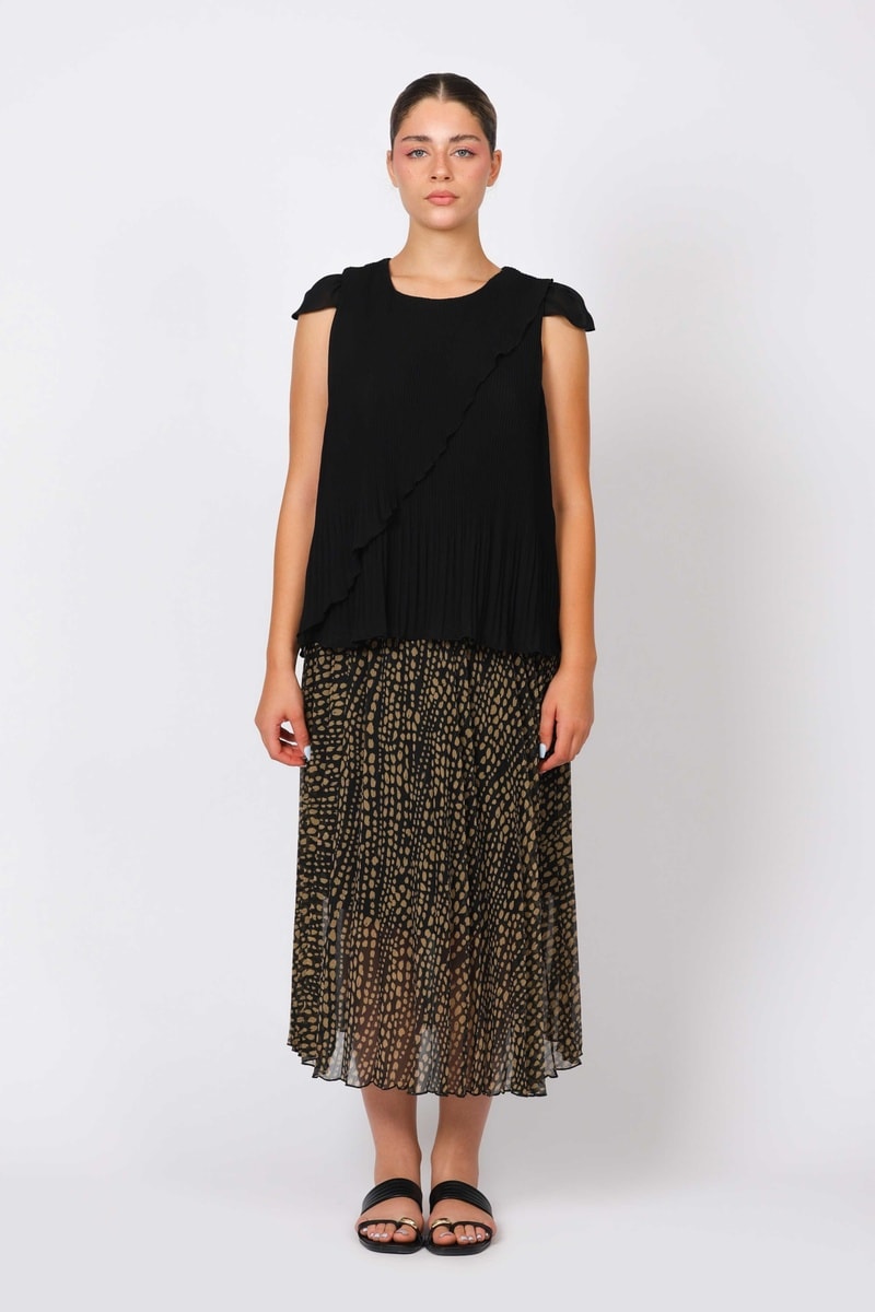 Falda midi - Beige y negro