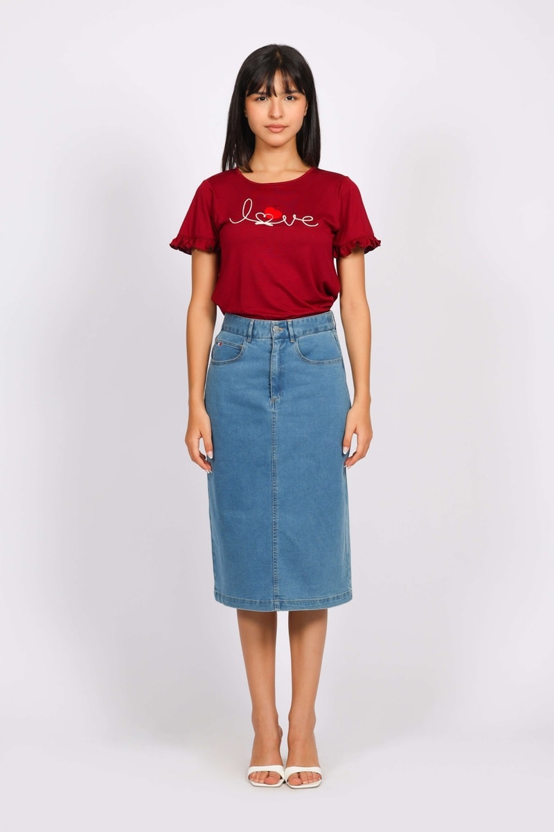 Falda recta vaquera.
