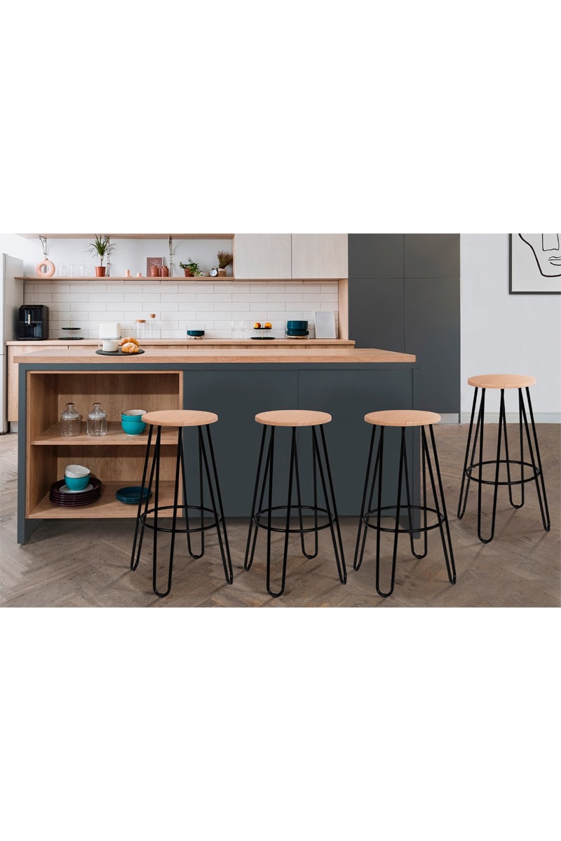 4 taburetes Missouri - Imitación madera y negro