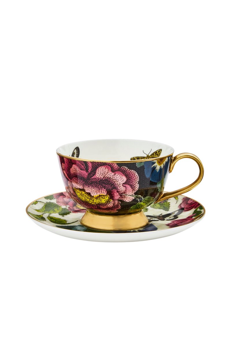Taza de té y platillo de Fine China y bañados en oro amarillo Creatures of Curiosity - 25 cl