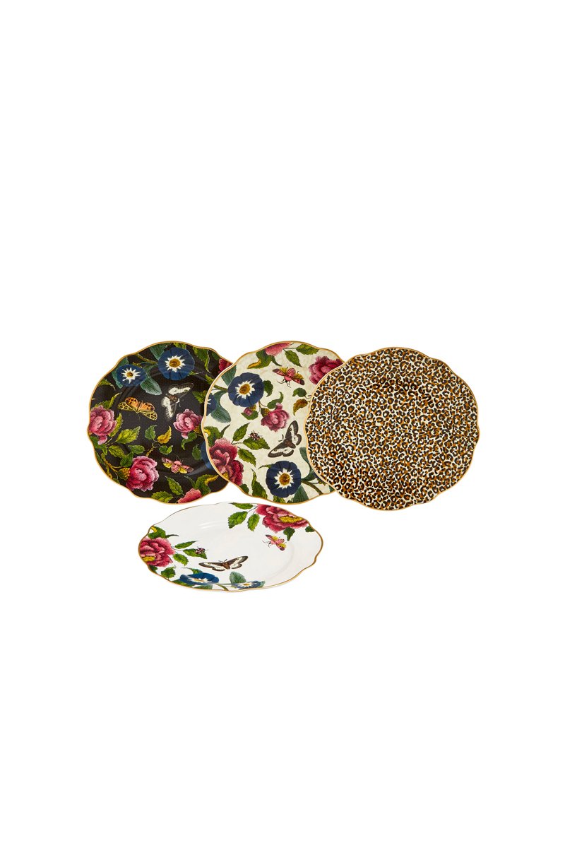 4 platos para tarta de Fine China y bañados en oro amarillo Creatures of Curiosity - 19,1 x 19,1 x 1,6 cm