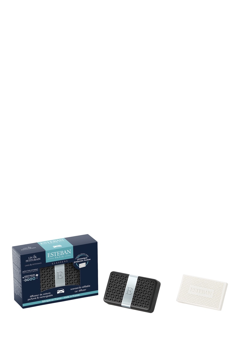 Precauciones de uso: no colocar directamente en una superficie no protegida. Evitar el contacto prolongado con la piel. No instalar o manipular el ambientador durante la conducción. Nocivo para los organismos acuáticos, causa efectos nefastos a largo plazo.