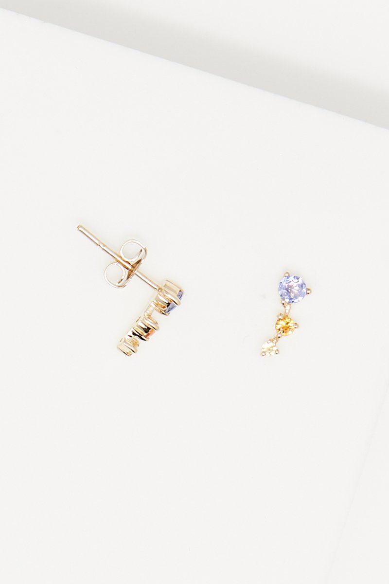 Pendientes de oro amarillo con un topacio y 2 zafiros.