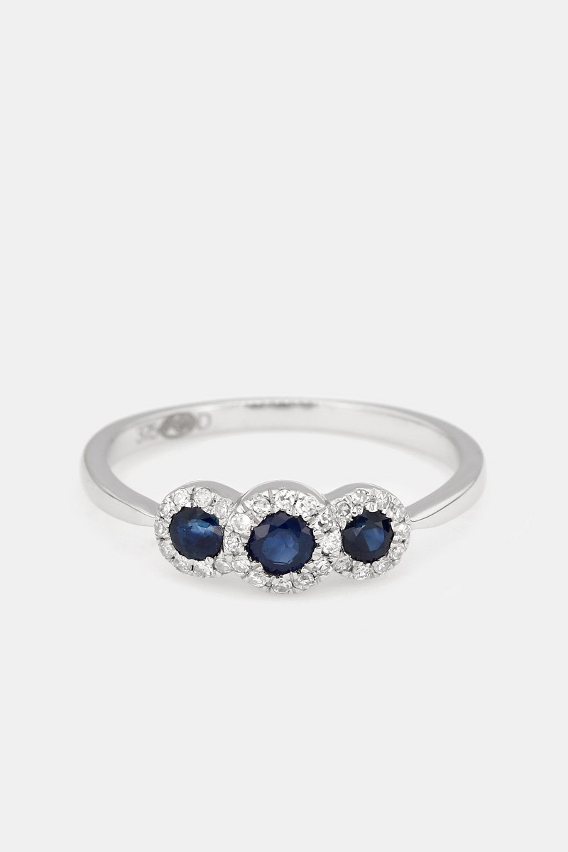 Anillo de oro blanco con 30 diamantes y 3 zafiros.