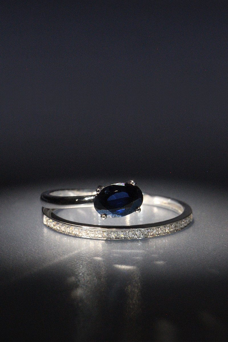Anillo Sannia - Oro blanco, diamantes y zafiro