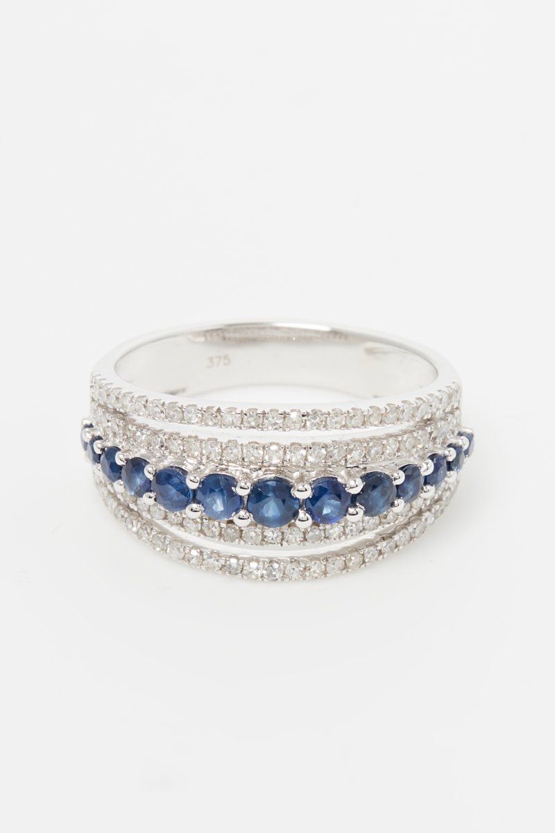 Material: oro blanco 375/1000, diamantes de 0,38 quilates/100 y zafiros de 0,74 quilates/13