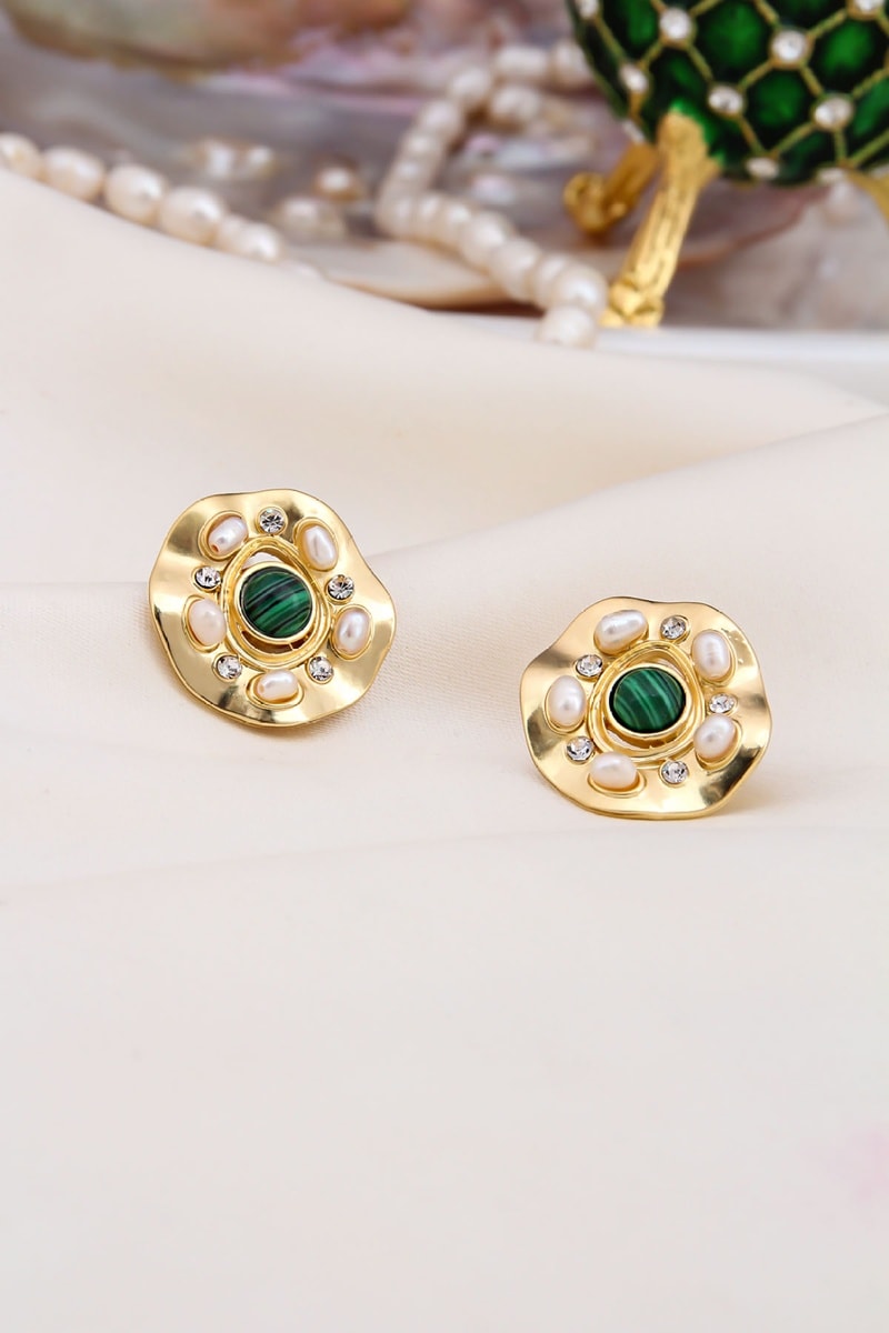 Material: latón, cobre, perlas cultivadas y malaquitas