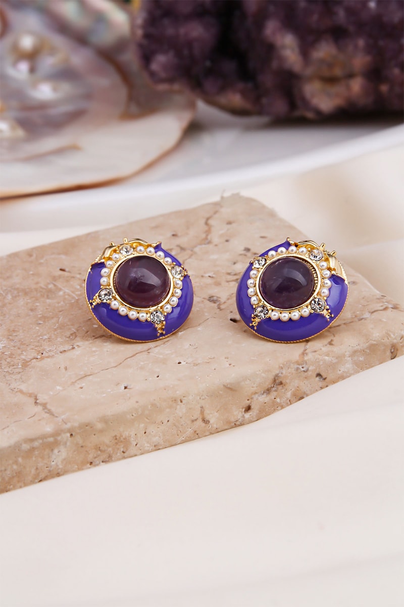 Dormilonas con una amatista, perlas de imitación y cristales.