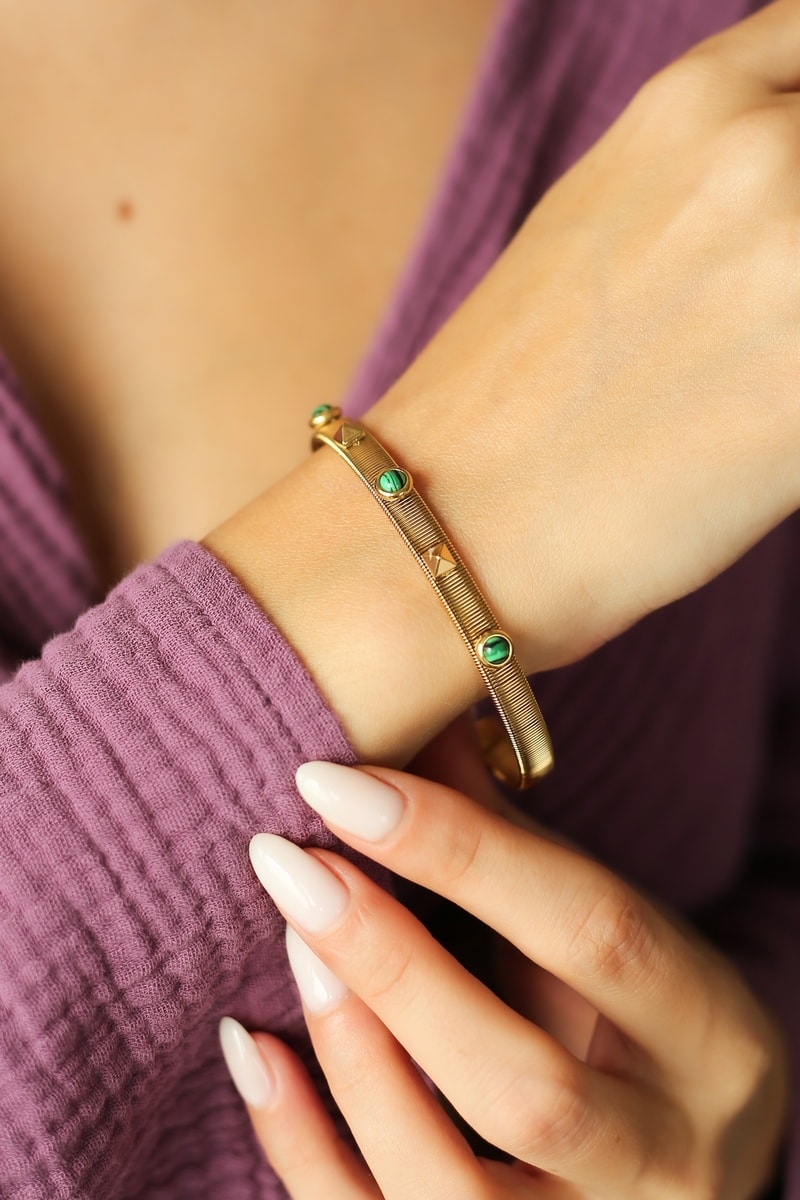 Pulsera abierta chapada en oro amarillo con 3 circones.