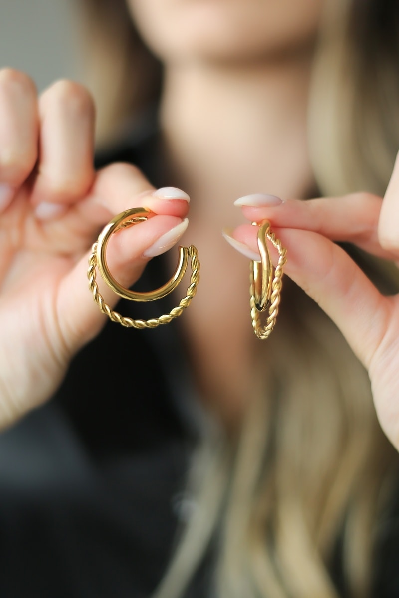 Material: acero inoxidable chapado en oro amarillo y latón chapado en oro amarillo