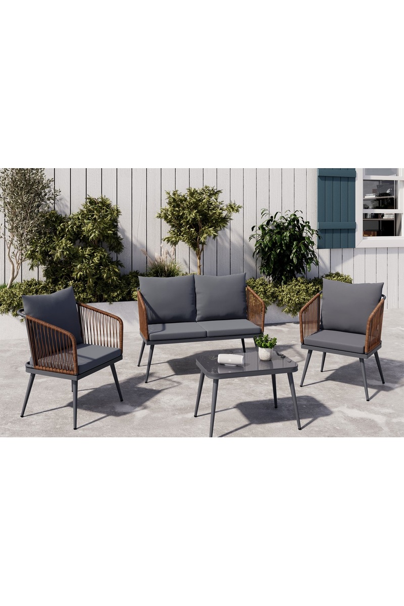 Salón de jardín Florida de 4 plazas con cojines de acero y polirratán