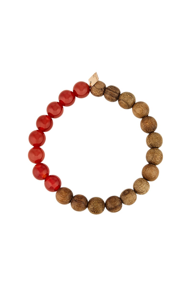 Pulsera elástica de oro rosa y madera con 8 ágatas.