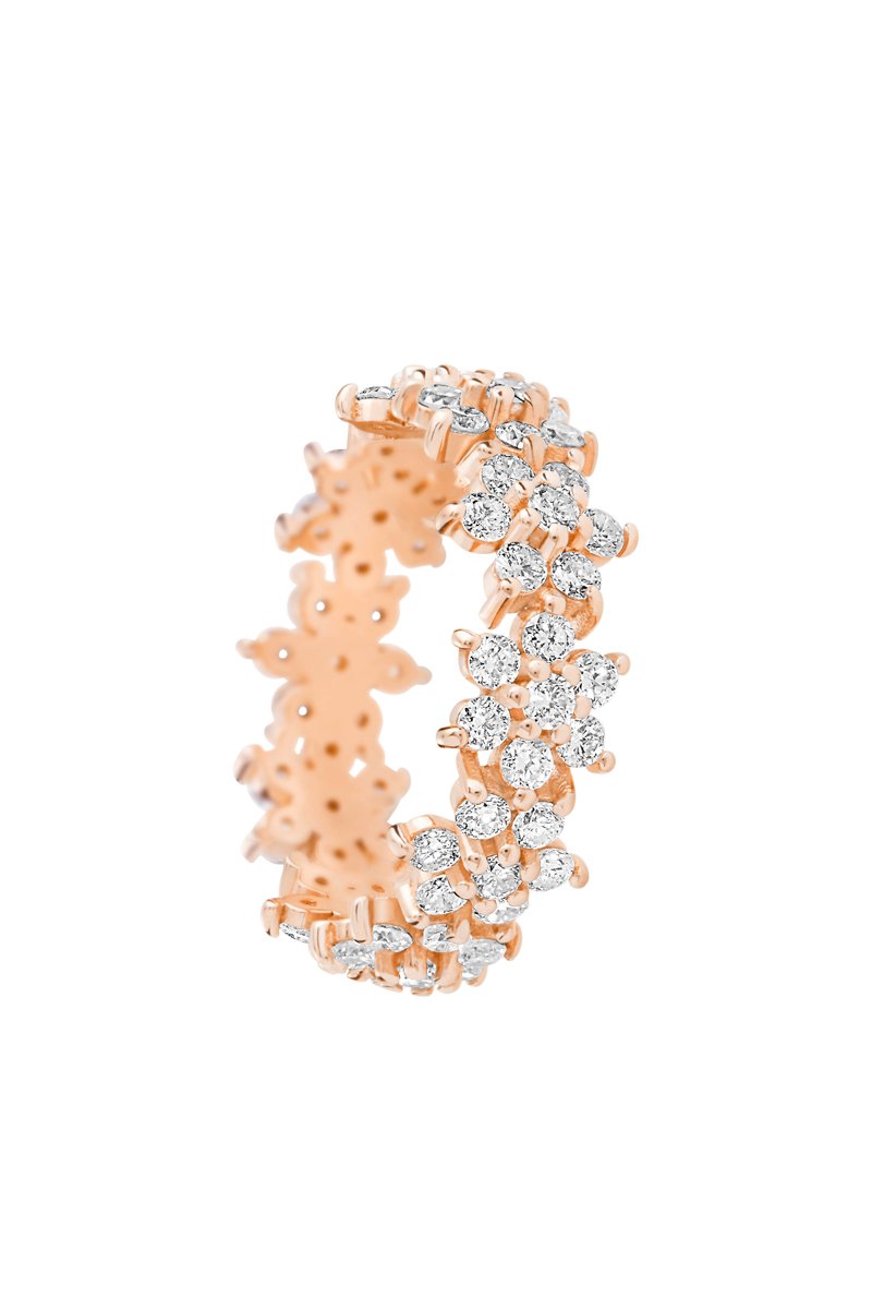 Anillo de oro rosa con 70 diamantes.