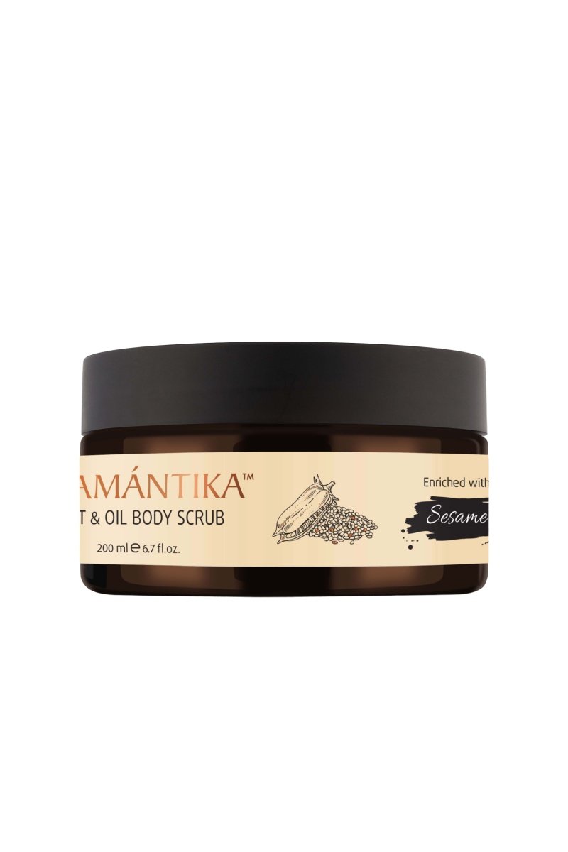 Exfoliante corporal con sal y aceite de semillas de sésamo.