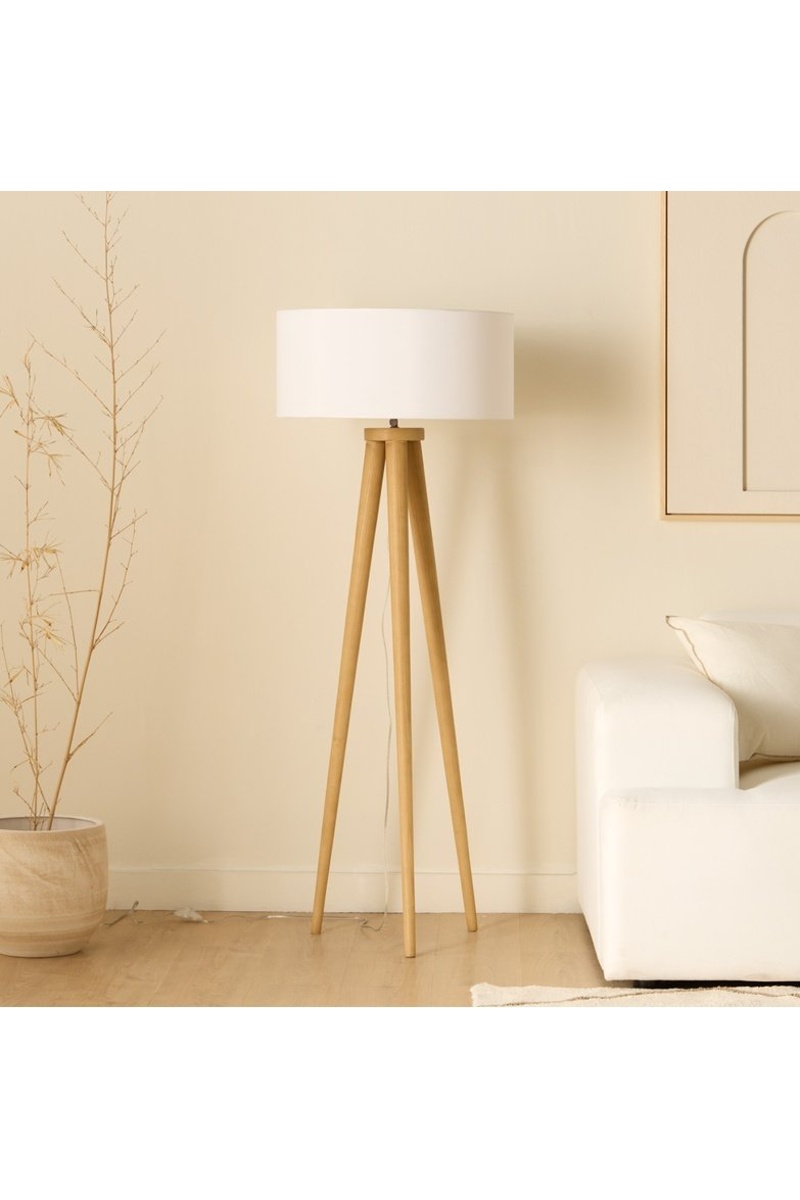 Lámpara trípode de madera de Sungkai - Blanco y natural