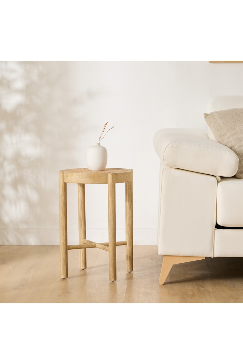 Mesa auxiliar de madera de Sungkai maciza y ratán - 39 x 50,5 x 39 cm