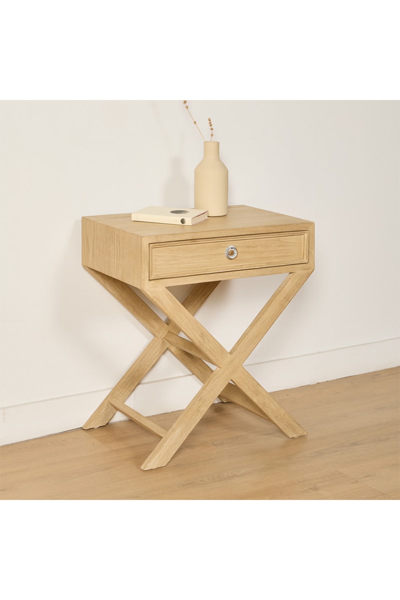 Mesilla de noche de 1 cajón de madera de Sungkai - 53 x 60,5 x 35 cm