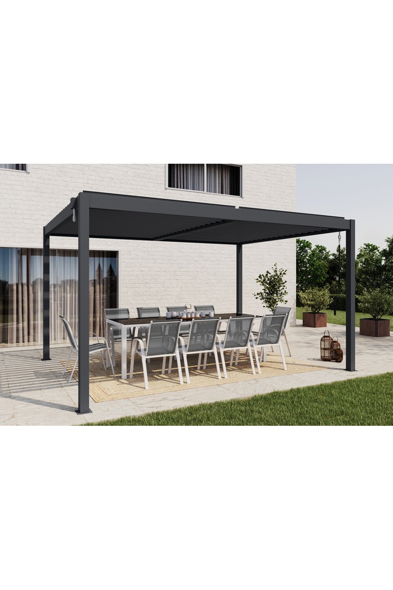 Duradera, resistente y estética, esta pérgola de aluminio se integra a la perfección en tu jardín, aportando un toque de modernidad y sofisticación.