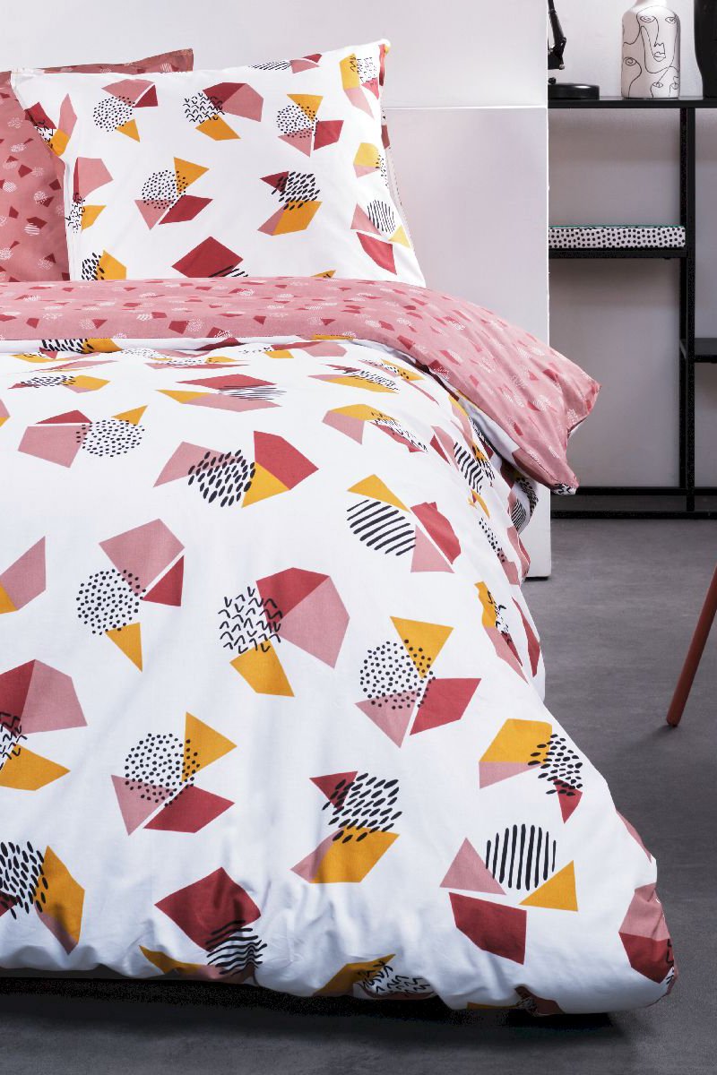 Juego de nórdico de algodón 57 hilos/cm² Sunshine - Blanco y rosa