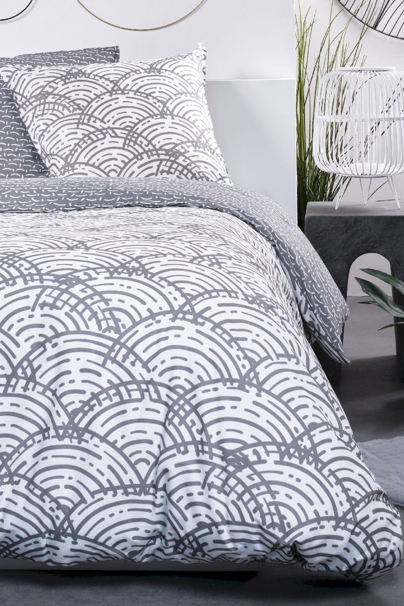 Juego de nórdico de algodón 57 hilos/cm² Sunshine - Blanco y gris